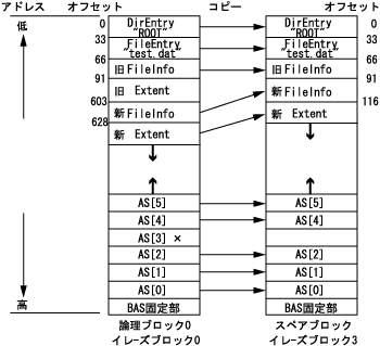 そして、ASも同時にスペアブロックにコピーします。この時Offsetの値はスペアブロック上での新しいオフセット値を設定することになります。