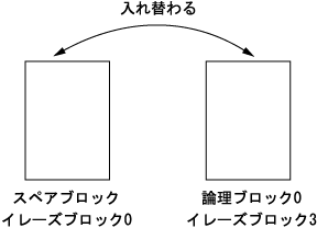 となっています。注意が必要なのは、スペアブロックが元の論理ブロックになり、論理ブロックがスペアブロックになるということです。