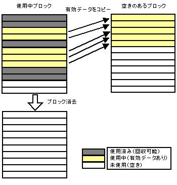 この操作と同時に,使用済みブロックの回収を実施しておかないと管理情報の更新分だけ残容量を減らしてしまうだけとなってしまいます.